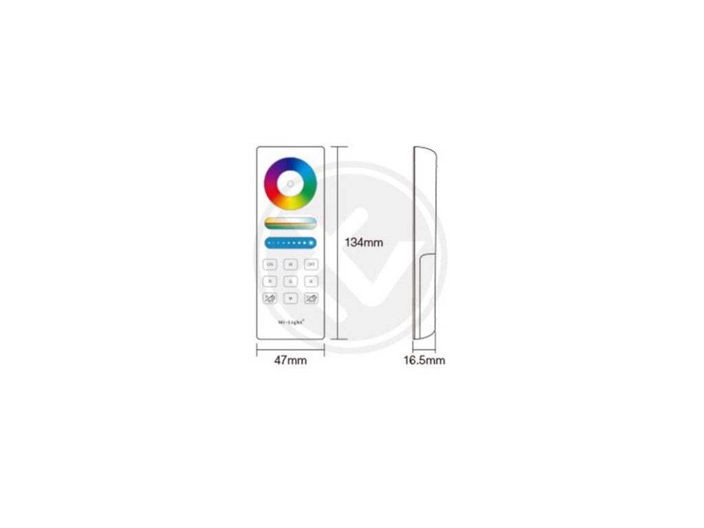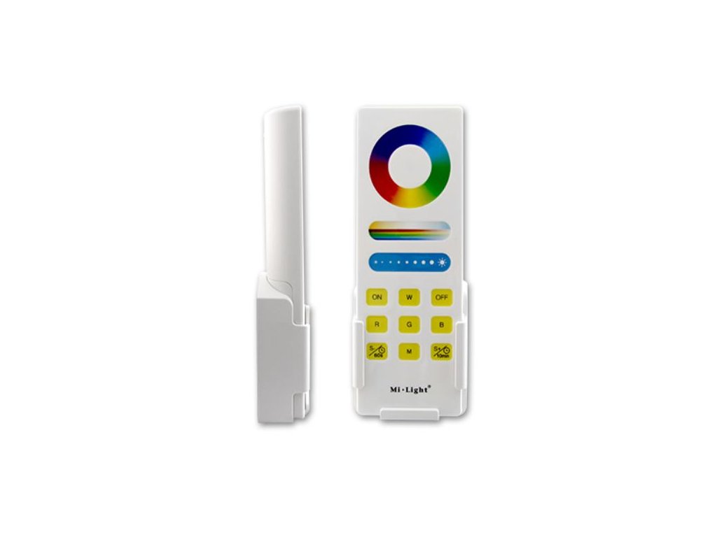 MiLight diaľkový ovládač (vysielač) pre RGB, RGBW, RGB Duálne a pre RGB+CCT LED pásiky, určený pre použitie s MiLight alebo MiBoxer ovládačmi (prijímačmi), súčasťou aj nástenný držiak