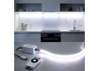 Sada s 15m CCT Duálnym pásikom s vysokým 12W výkonom, s 3 typmi COB čipov Teplá+Denná+Studená, zaliate v luminofóre pre neprerušovanú líniu svetla, s RF dotykovým ovládačom a kovovým zdrojom pre pripojenie na 230V