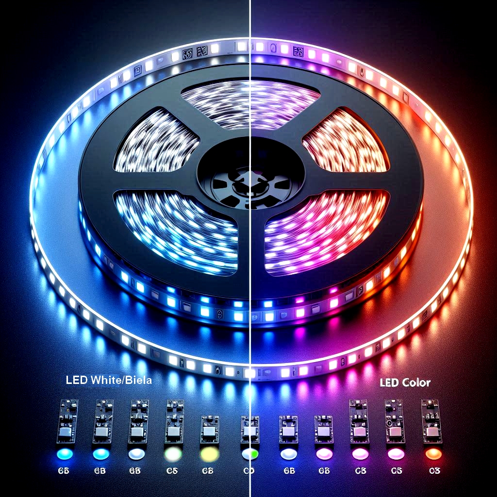 Rovnako ako RGB pásiky, majú aj tieto v čipe R - červenú, G - zelenú a B - modrú farbu, ale navyše majú aj samostatnú W - bielu.