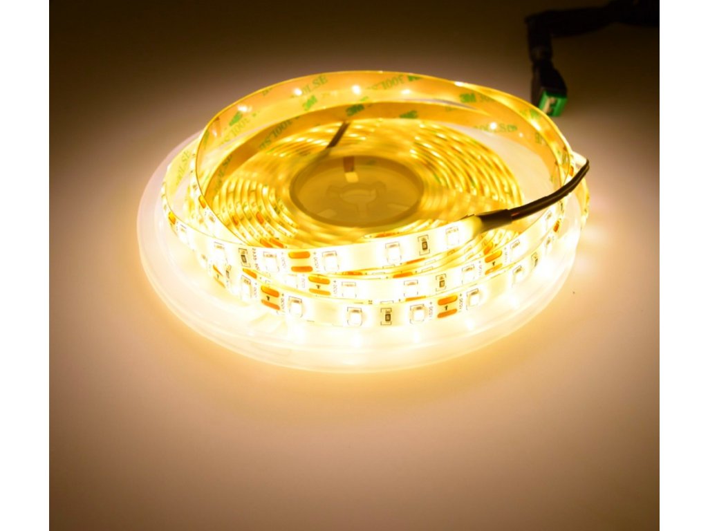 Vode odolný 5m dlhý LED pásik, 9,6W príkon s vysokou svietivosťou, 600 LED dvojnásobná hustota diód, Teplá biela farba svetla pre oddychové priestory. Odolnosť voči vlhkosti a postriekaniu vodou zabezpečuje silikónová vrstva.